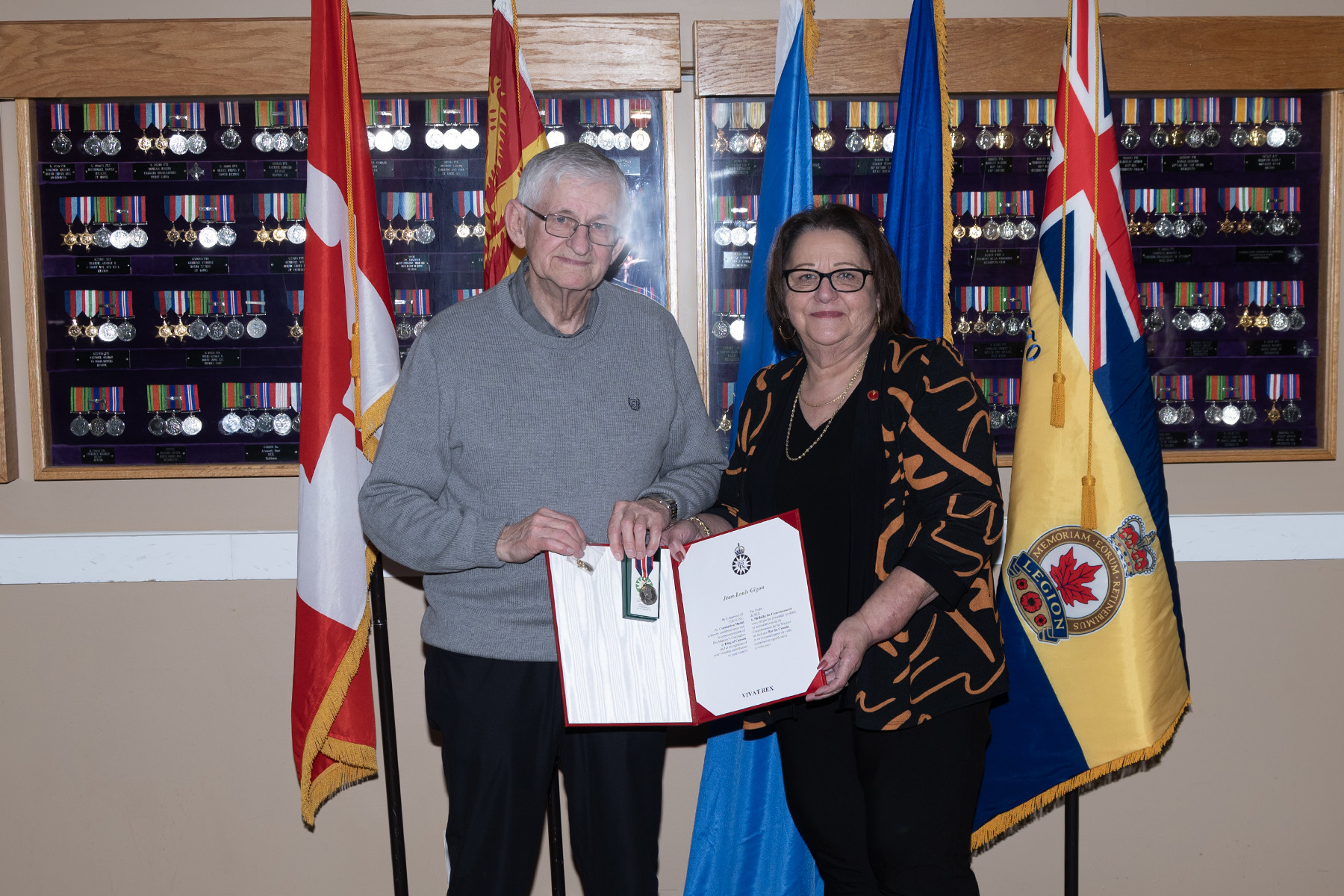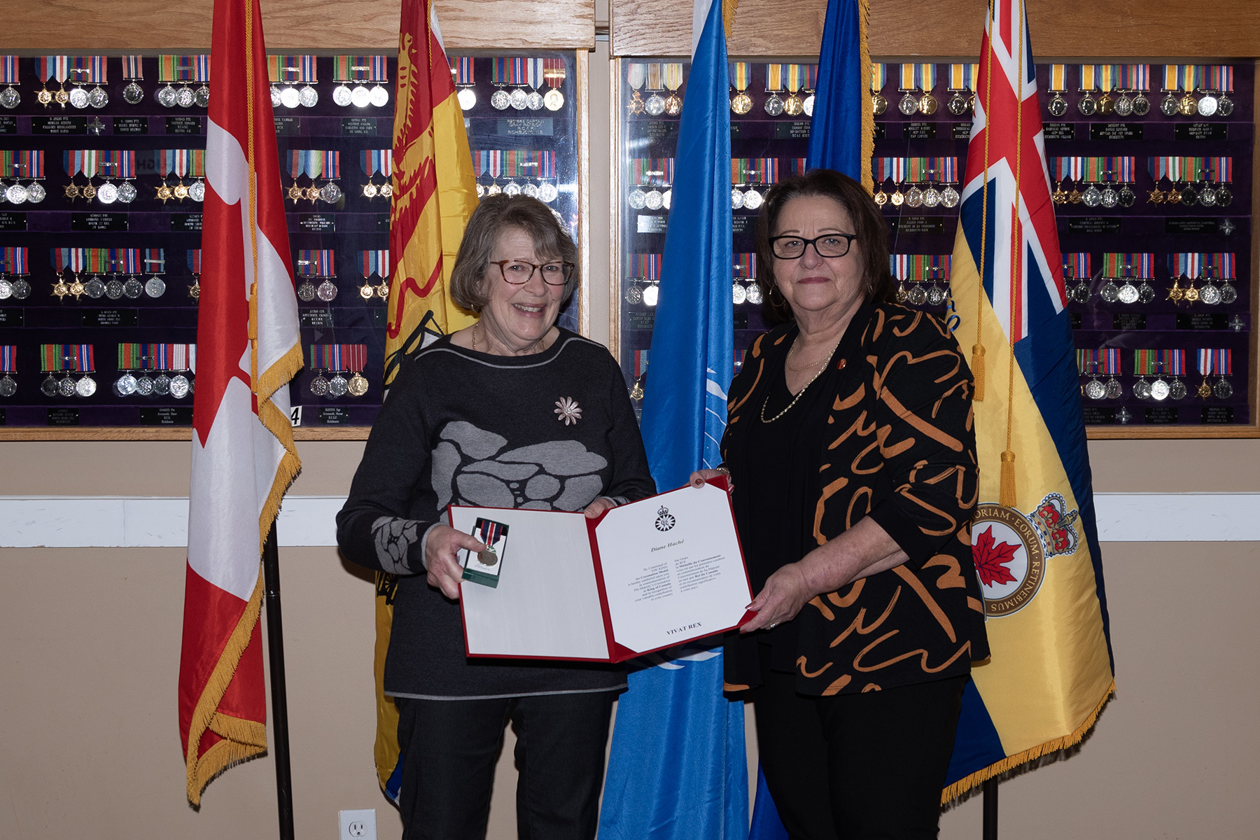 Recipients Marie Chevarie and Raymond Vautour were, regrettably, unable to attend the ceremony; consequently, they received their medals from the Senator at a later time.